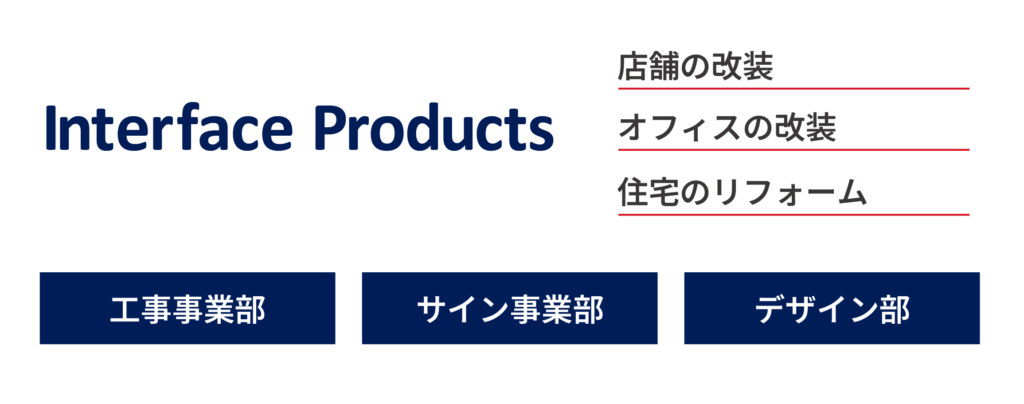 店舗と人が出会う瞬間、そこには多くの「接点」があります。目を引く外観、ブランドを象徴するロゴ、居心地の良い内装。私たちは、その一つひとつの接点をより良く磨き上げる専門家集団です。 デザイン部、サイン事業部、工事事業部がワンチームとなり、お客様の想いに寄り添った改装プランを推進。店舗からオフィス、住宅まで、人と場所の幸せな関係をデザインします。